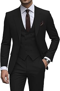 HUEZOE Mens Suit Slim Fit 3 Piece Double Breasted Suit Men Formal Tuxedo Set Cas..