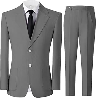 JinXuanYa Mens Suit 2 Pieces Slim Fit Suit for Men, Seersucker Business Formal S..