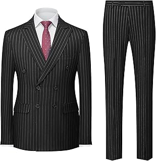 MOGU Mens Double Breasted Pinstripe Suit 2 Piece Slim Fit Tuxedo Formal Jacket a..