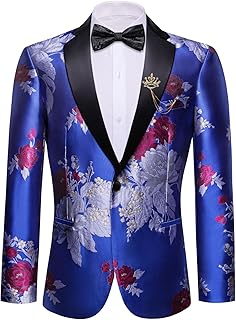 Barry.Wang Men's Tuxedo Blazer Luxury Paisley Embroidery Casual Jacket Lapel One..